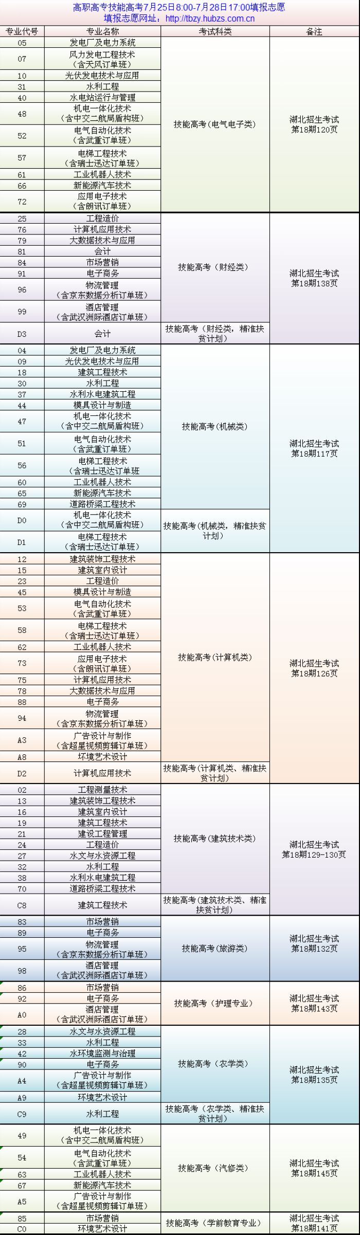 2020年beat365官网湖北技能高考批志愿填报专业代码一览表