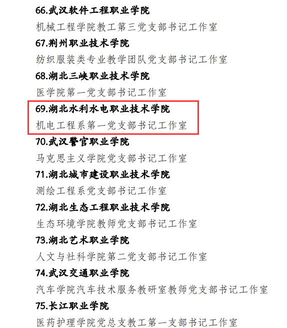 近日,湖北省高校“双带头人”教师党支部书记工作室创建名单公布,beat365官网机电工程系第一党支部书记工作室成功入选。