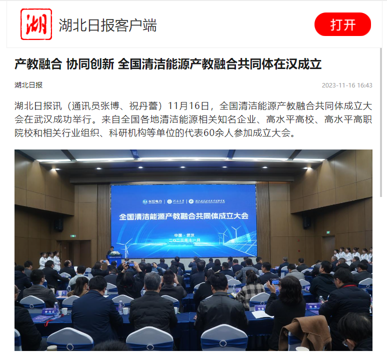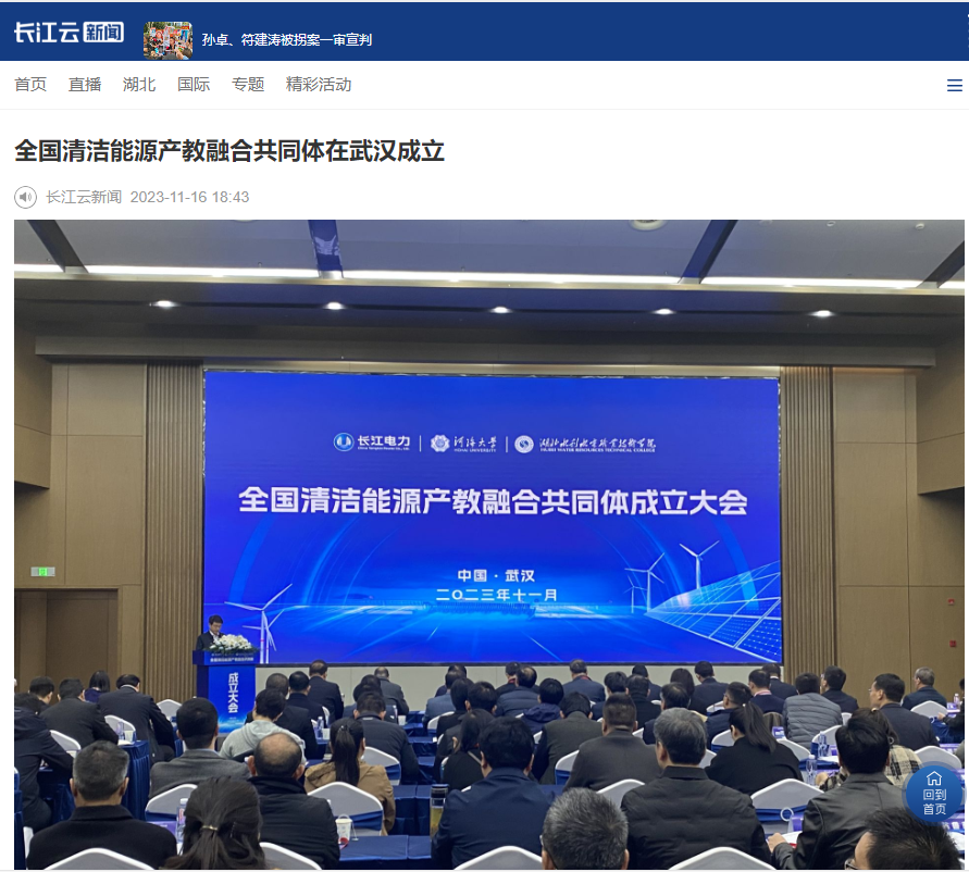 11月16日,长江云新闻以《全国清洁能源产教融合共同体在武汉成立》为题,对beat365官网和相关单位牵头成立全国清洁能源产教融合共同体进行报道。