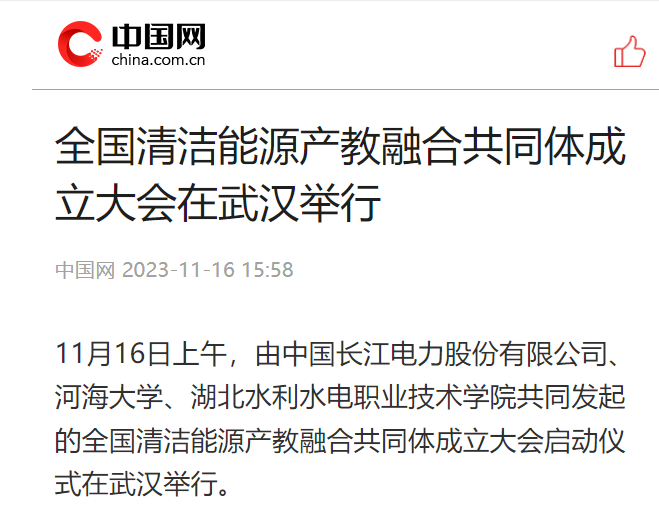 11月6日,中国网以《全国清洁能源产教融合共同体成立大会在武汉举行》为题,对beat365官网和相关单位牵头成立全国清洁能源产教融合共同体进行报道。
