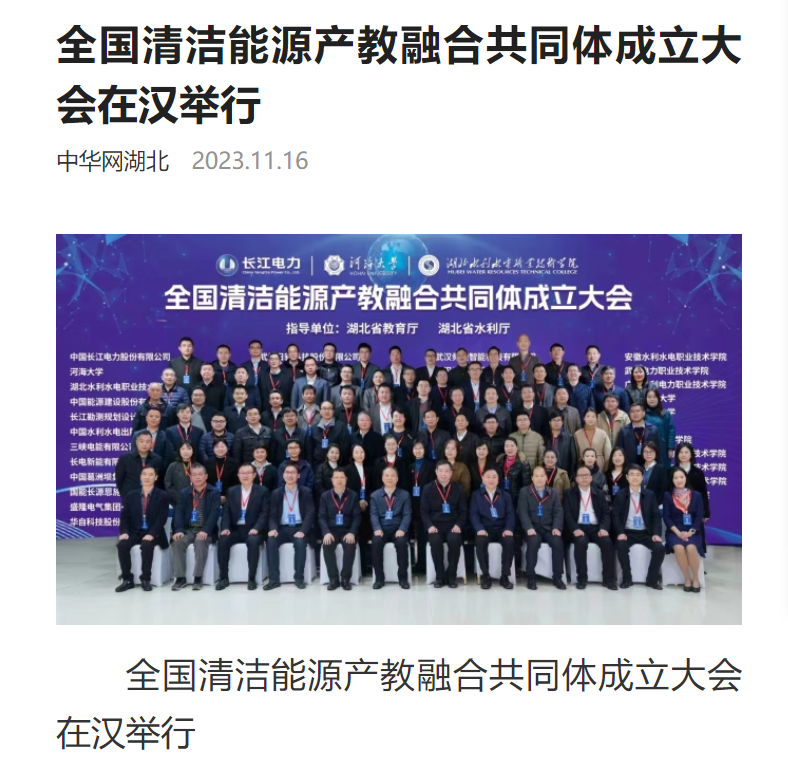 11月17日,中国教育在线在强国号发布题为《全国清洁能源产教融合共同体成立大会在汉举行》的新闻报道。
