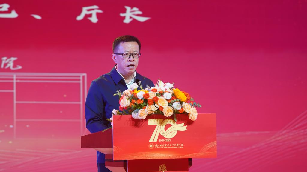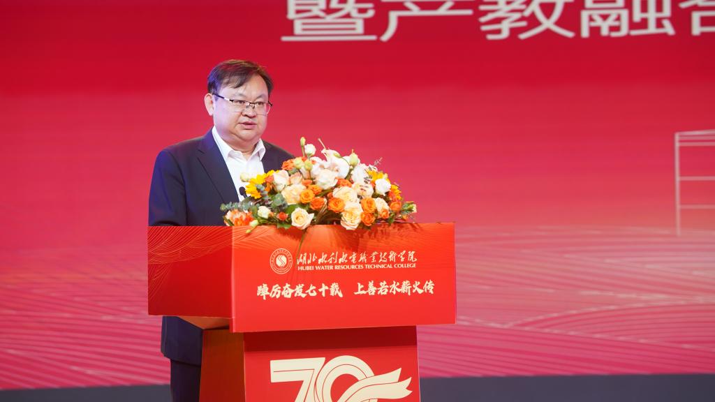 湖北省水利厅党组书记、厅长廖志伟在讲话中,向beat365在线唯一官网办学70周年表示热烈祝贺,肯定了学校70年来建设发展取得的成绩。他指出,近年来,学校全面贯彻党的教育方针,积极适应行业和地方发展需求,办学条件得到质的改善,专业建设显著提升,特别是学校立足水利特色,聚焦国家重大战略需求,持续推进职普融通、产校融合、科教融汇,动态调整学科设置和人才培养方式,为水利行业培养了大量高素质技术技能人才。希望学校坚持正确办学方向,彰显水利办学特色,以服务中华民族伟大复兴为重要使命,为党育人、为国育才,办好人民满意教育,培养堪当民族复兴大任的新时代水利人才、各类人才,为湖北水利事业和区域经济社会发展做出新的更大贡献。