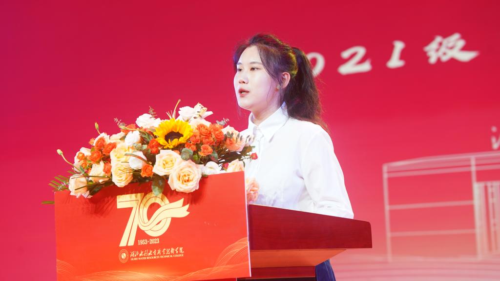 随后,退休教师代表、全国优秀教师叶火炎教授;青年教师代表、全国水利职教名师梁吟曦老师;学生代表电力电子工程系2021级学生房子群分别上台发言。24位青年学子上台献词,以青春之名,用朗朗之声献礼学院办学70周年校庆。