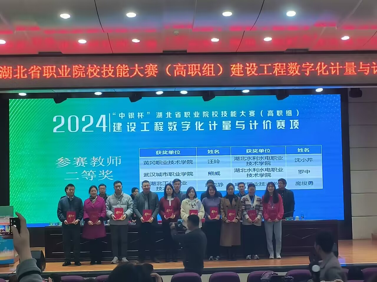 3月14日,2024年“中银杯”湖北省职业院校技能大赛高职组建筑工程数字化计量与计价赛项在湖北城建职业技术学院举行。共有来自全省37所高职院校的74支队伍同台竞技。本次竞赛最大亮点是师生同台同题同赛,经过一天的激烈角逐,beat365官网工程造价专业学生丁语涵、黄俊涛、赖思诚团队获推荐组三等奖,张乐乐、马晨茜、李才思团队获抽测组三等奖,工程造价教研室教师沈小芹、罗中分获教师组个人全能赛二等奖。
