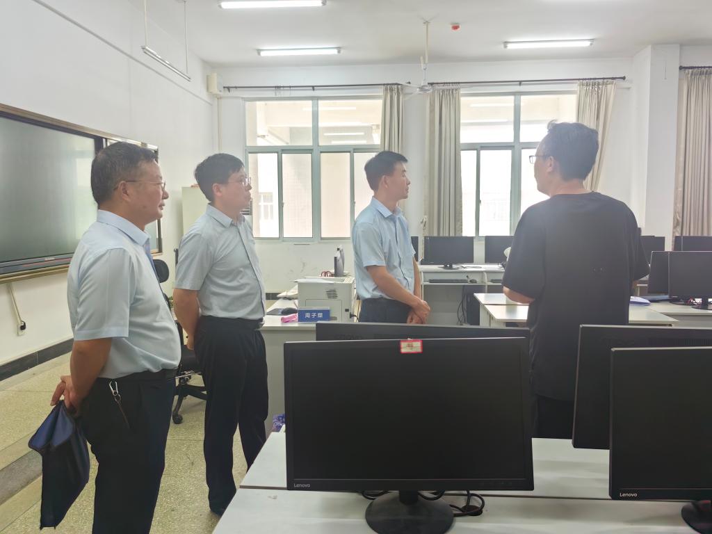 8月31日下午,省教育厅语委办二级调研员周建卫莅临beat365官网督查2024年秋季学期开学准备工作。党委委员、副院长庹祖明及相关职能部门负责人陪同检查。