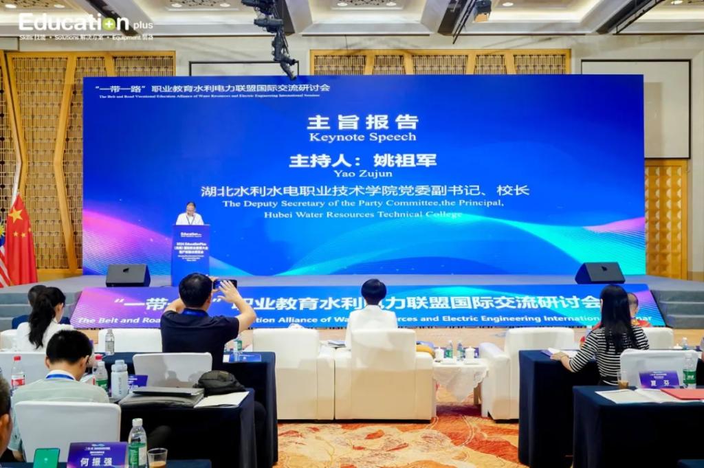 9月11日至12日,党委副书记、校长姚祖军受邀参加在江苏无锡举办的2024 EducationPlus(无锡)国际职业教育大会暨产教融合博览会同期论坛“一带一路”职业教育水利电力联盟国际交流研讨会,并主持大会主旨报告环节。