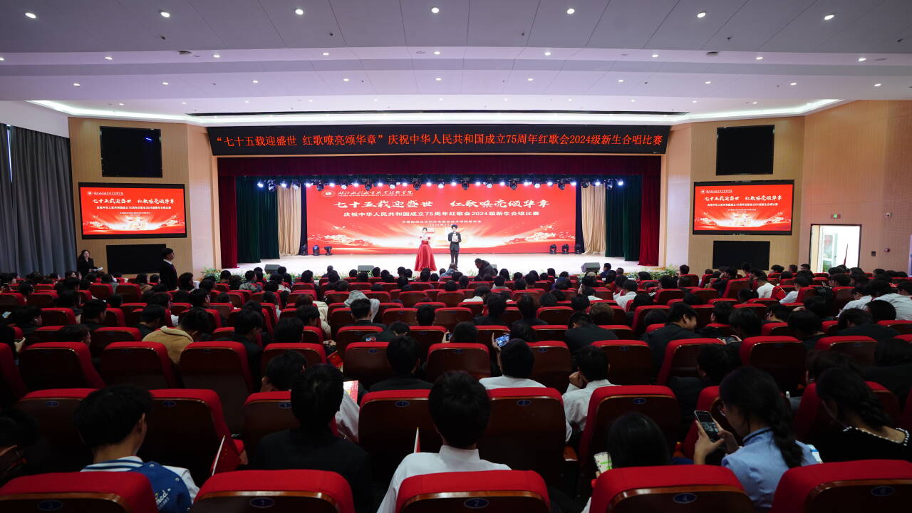 为庆祝中华人民共和国成立七十五周年,高亢唱响爱国主旋律,深情颂扬新中国成立七十五载的光辉历程与伟大成就,11月21日下午,“七十五载迎盛世 红歌嘹亮颂华章”庆祝中华人民共和国成立75周年红歌会2024级新生合唱比赛在学院汤逊湖校区大学生活动中心报告厅隆重举行。学院党委副书记、院长姚祖军出席活动并讲话。