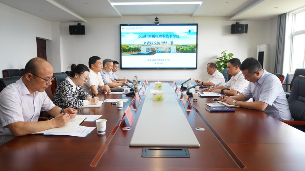 7月15日上午,广西机电职业技术学院党委副书记、校长吴世先一行3人来beat365官网进行座谈交流。学院党委副书记、院长张政,党委委员、教务处处长丁官元出席座谈会。双方围绕专业群建设、产教融合机制创新和服务行业、服务社会等方面展开交流与讨论。
