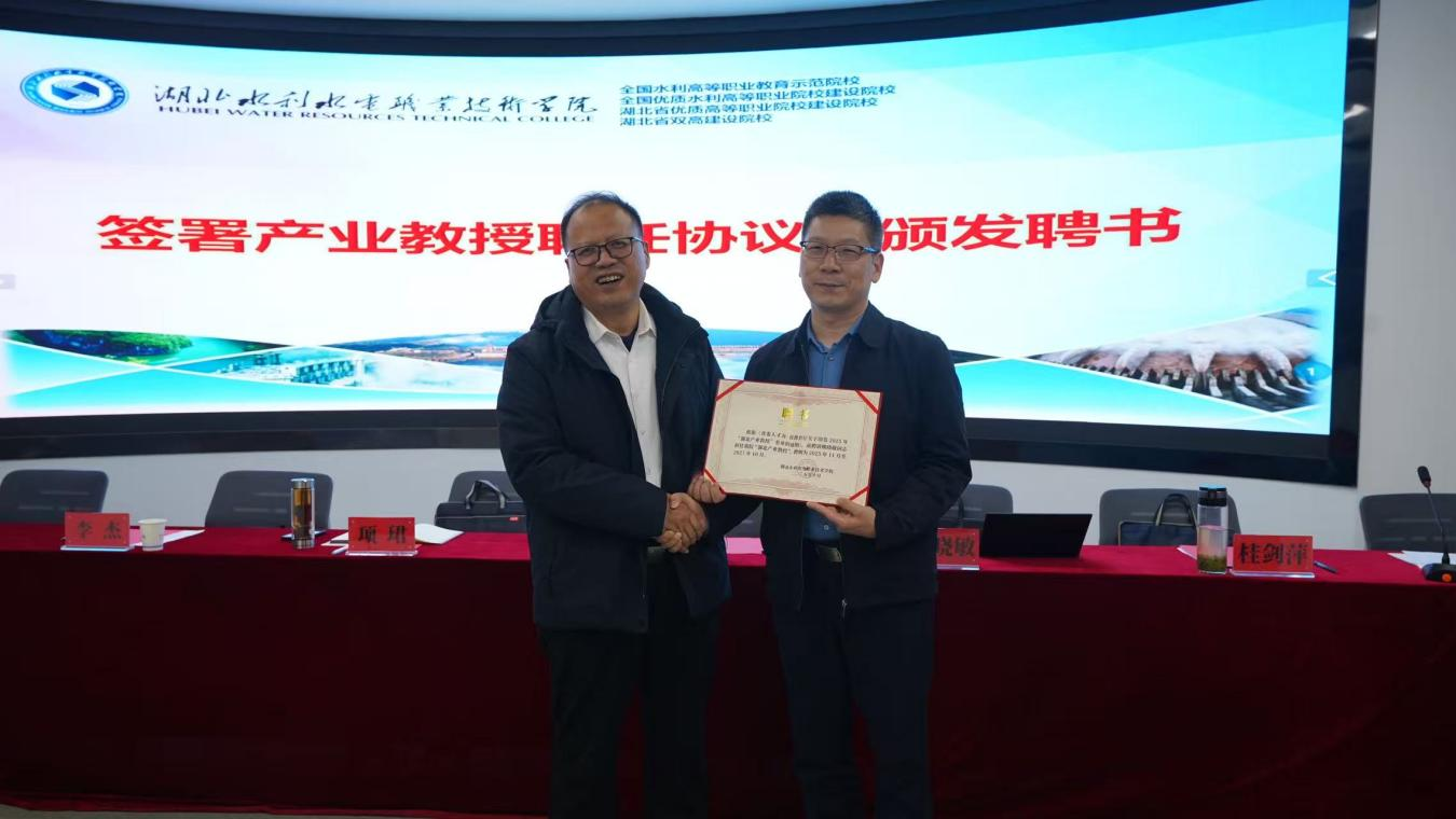 姚祖军代表学院欢迎湖北省水利水电规划勘测设计院有限公司领导一行到访,并对该院长期支持学院发展表示感谢。姚祖军表示,产业教授的加入,将进一步提升学院专业群建设水平和人才培养质量。学院将持续完善产业教授制度,深化校企协同育人机制,推动项目共建、资源共享和创新合作,共同服务湖北水利事业高质量发展。