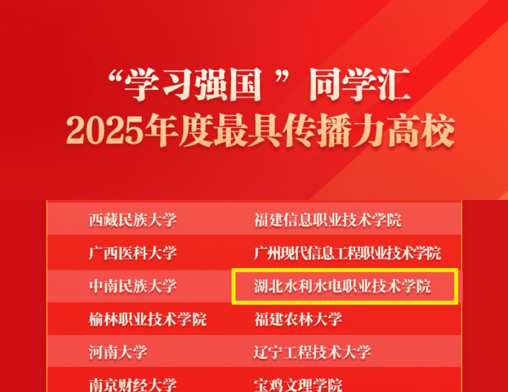 近日,中共中央宣传部、“学习强国”平台公布2025年度“同学汇”系列奖项评选结果,beat365官网从410所参评高校中脱颖而出,荣获“2025年度最具传播力高校”称号,是武汉市唯一上榜的职业院校。