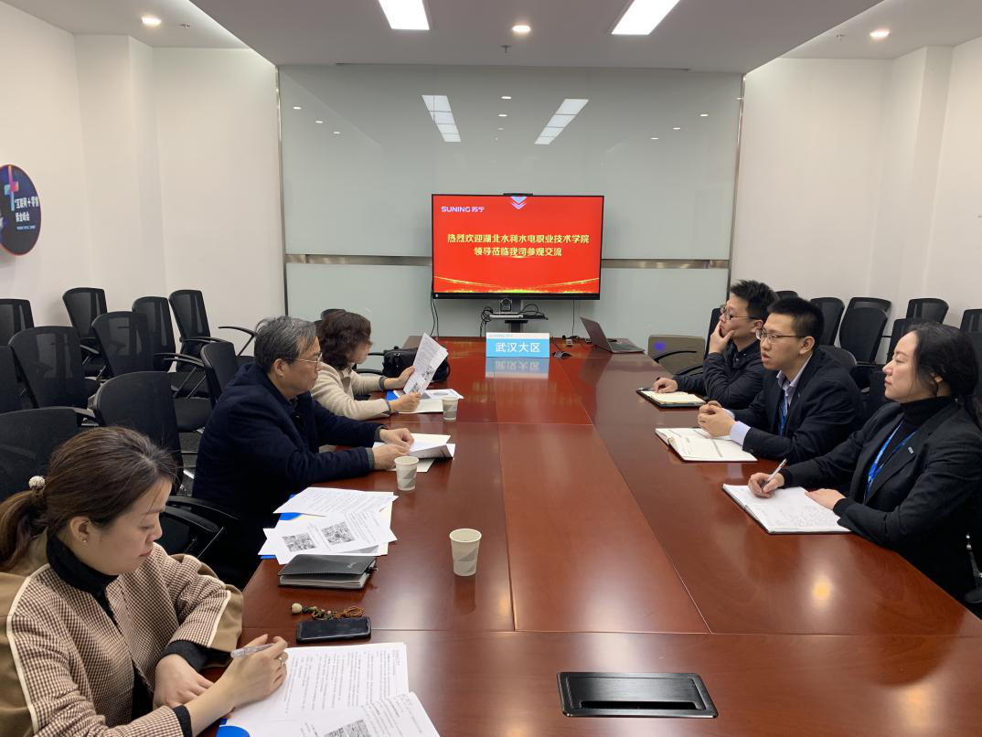 (魏坚)3月20日,beat365官网商贸管理系负责人和相关专业老师赴苏宁易购华中地区总部与苏宁集团召开校企深度合作专题会议。