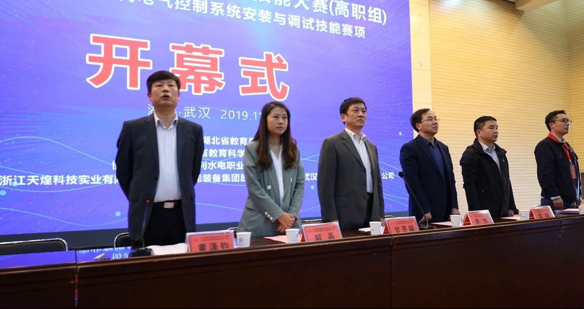 (成汉华)11月5日下午,天高云淡,秋风习习,2019年湖北省职业院校技能大赛(高职组)现代电气控制系统安装与调试赛项开幕式在beat365官网汤逊湖校区学术报告厅隆重举行。赛项仲裁长、湖北省教育厅郭晶主任,赛项裁判长、武汉铁路职业技术学院李伟教授,赛项仲裁长、湖北生物科技职业学院龙翔教授,学院党委书记甘齐顺,赛项执委会副主任、学院党委委员、副院长黄泽钧,赛项副裁判长、学院电子电力工程系电气专业负责人朱光波老师,以及来自全省36所高职院校的领队、指导老师、参赛选手、候选裁判和志愿者们参加了开幕式。