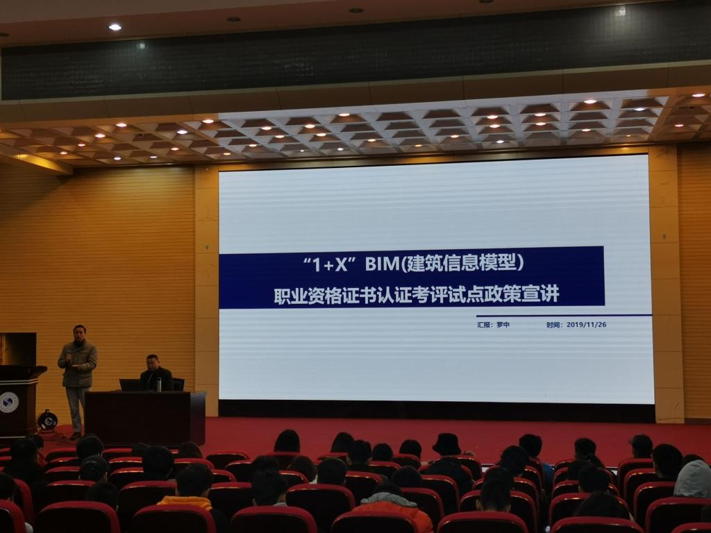 (侯琴)11月26日上午,beat365官网在汤逊湖校区召开了“1+X”证书制度试点政策宣讲会暨“1+X”证书认证考评考前动员会。建筑工程系负责人、BIM教学团队、17级建筑工程技术、工程造价、建设工程管理等专业学生及辅导员参加了宣讲会。