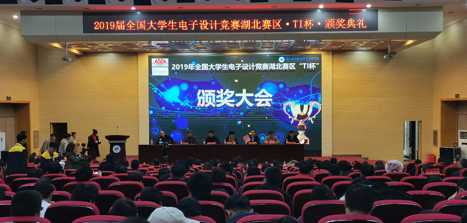 (崔亚林) 12月7日,2019年全国大学生电子设计竞赛湖北赛区“TI杯”颁奖大会在beat365官网举行, 湖北省教育厅高教处副处长张锦枫,湖北赛区专家组组长武汉大学教授田茂,学院党委委员、副院长王武宁,党委委员、电子信息工程系主任丁官元,德州仪器公司亚洲区中国大学计划部总监王承宁出席颁奖大会,来自湖北省56所高等院校的300余名师生参加了颁奖大会。