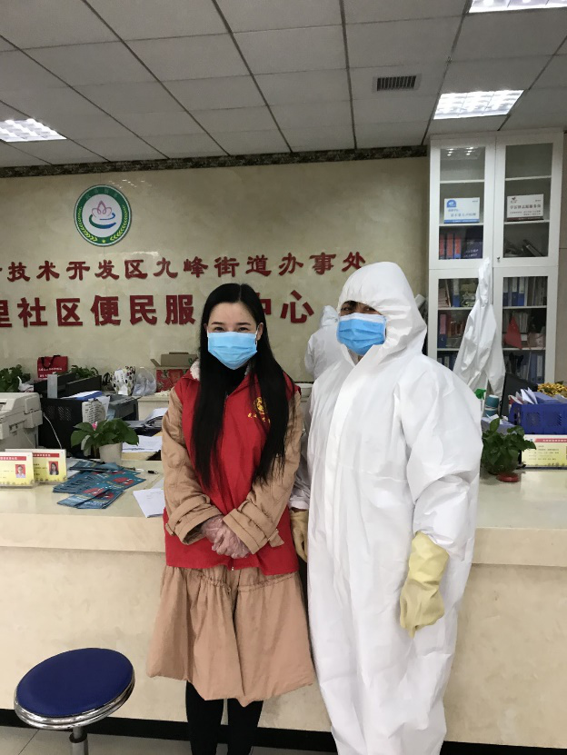 辅导员桂雅洁,2月13日起在居住的辖区参加志愿者工作,在小区门口负责登记、量体温、统计、送菜等工作。她说:“我是党员,有困难我就应该第一个上,在这种危难时刻,我们每一个人都不能只是一名看客,都应为抗击新型冠状病毒肺炎疫情工作贡献一份自己的力量。”