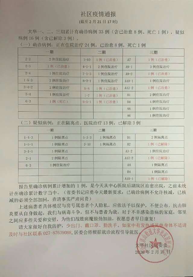 党员庞璐同志,于2月17日就到所在的大华社区报到登记。她利用自己的专业优势,协助社区在前期建群的基础上开展网格化管理。指导志愿者完成测温小程序开展每天体温检测的统计,为社区抗疫工作提供智力支持。指导完成52户88人每日的信息排查,协助社区志愿者推进规范日登记工作。庞璐同志还坚持全程网上办公,适时进行网络小结点评,为片区的规范管理贡献了智慧和力量。