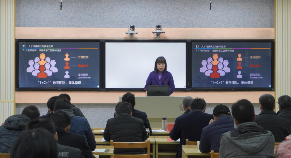 (教师梁吟曦汇报水利优质专业建设情况)