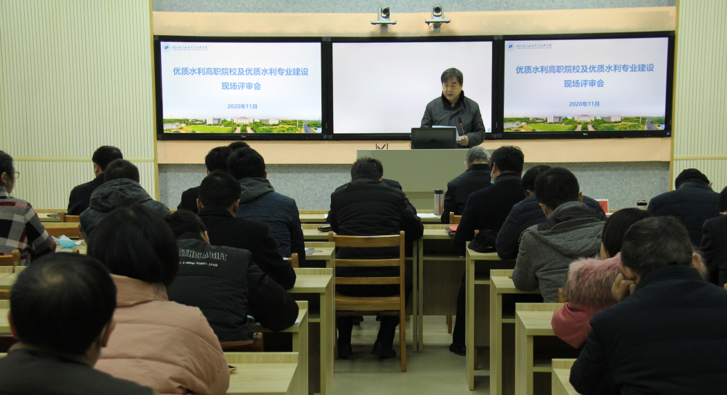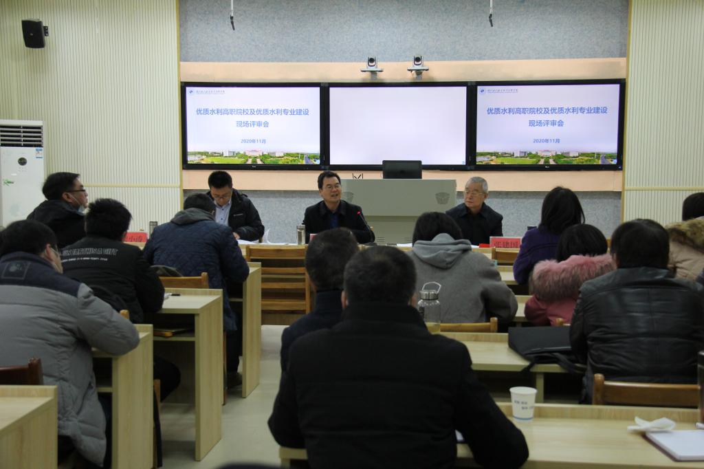(教务处)11月26日,依据水利部安排,以杨凌职业技术学院水利工程分院院长郝红科教授为组长的专家组一行3人,到beat365官网开展全国水利优质院校及优质水利专业评审与验收。学院领导班子成员、各系部负责人、教学主任、专业负责人、相关专业教师等参加现场评审会。学院党委委员、电子电力系主任丁官元主持会议。