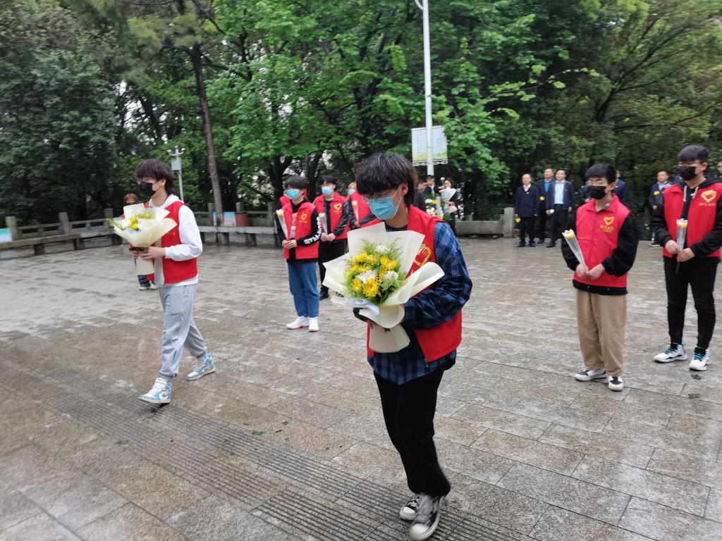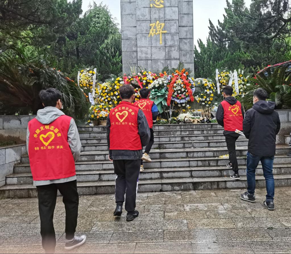 (张艺蕾)4月1日,在清明节来临之际,beat365官网汤逊湖校区和南湖校区青年志愿者协会负责人组织志愿者代表们前往施洋烈士陵园举行“缅怀先烈精神,继承先烈遗志”扫墓祭奠活动。同学们向烈士墓敬献鲜花,全体人员向烈士墓鞠躬并默哀3分钟。