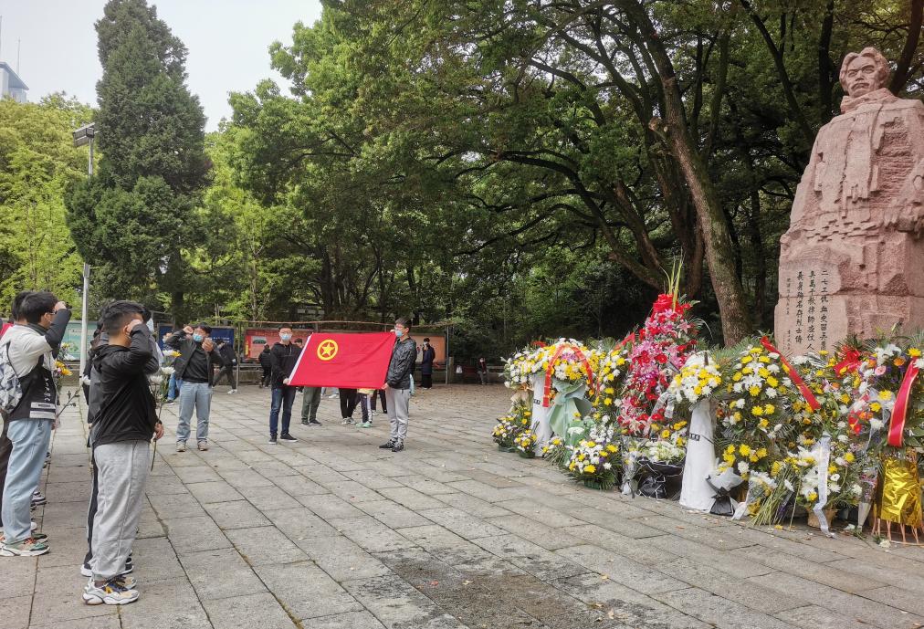 在烈士纪念园内,全体师生肃立默哀,由支部团员代表向革命先烈敬献花篮,全体同学在团旗下庄严宣誓,并依次敬献鲜花,表达对革命烈士的深切悼念和无限敬仰之情。随后,各班级团支部代表在现场举行主题团日活动,讲感受谈体会。