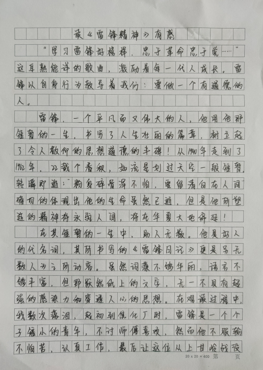 (舒卓)为喜迎建党一百周年,深入践行社会主义核心价值观,进一步弘扬雷锋精神和志愿精神,推动学雷锋活动常态化、机制化,形成践行雷锋精神、争当先进模范的生动局面,学院建筑工程系在3月举办了“雷锋精神大家谈”系列文创作品征集活动。