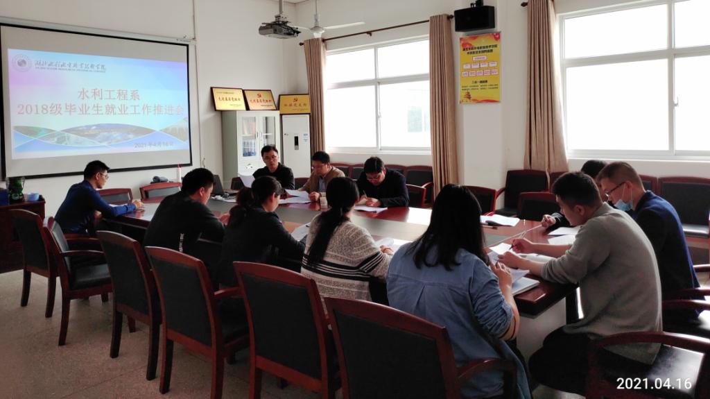 (鲁晓童)4月16日下午,水利工程系举办2021届毕业生就业工作推进会,院党委委员、招毕办主任冷涛,水利工程系相关负责人、系党总支副书记及2021届全体毕业班辅导员参加了会议。推进会由系党总支副书记主持。