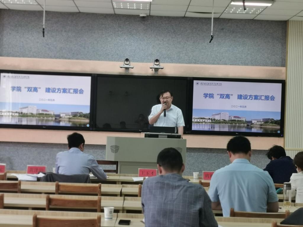 王玉才作重要指示,他指出,省级“双高”建设计划是十四五时期推动学院跨越式发展的重要机遇,全体干部要高度重视,以“只能成功、不能失败”的决心和勇气,全身心投入到“双高”建设中去;相关部门负责人要将“双高”建设作为首要工作来抓,成立“双高”建设工作领导小组及专班,认真研读文件,明确责任,加强学习,科学编制建设方案和申报书,定期汇报工作进展,确保按照教育厅规定的时间要求高质量提交“双高”建设申报材料。王玉才勉励在场干部,双高建设的目标已定,期待大家凝心聚力,以百折不挠、自强不息的水院办学精神投入到学院新一轮的建设中去。