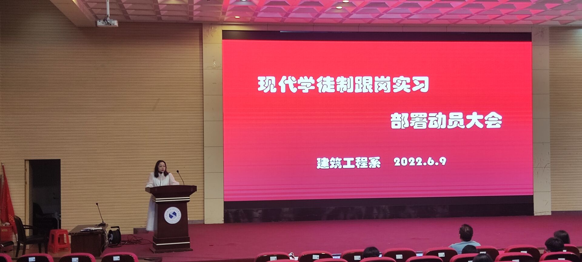 (建筑工程系)6月9日,建筑工程系在汤逊湖校区学术报告厅召开2020级现代学徒制跟岗实习部署动员大会,建筑工程系建筑装饰工程技术专业、建筑室内设计专业师生150余人参加大会。建筑工程系建筑设计教研室负责人主持大会。