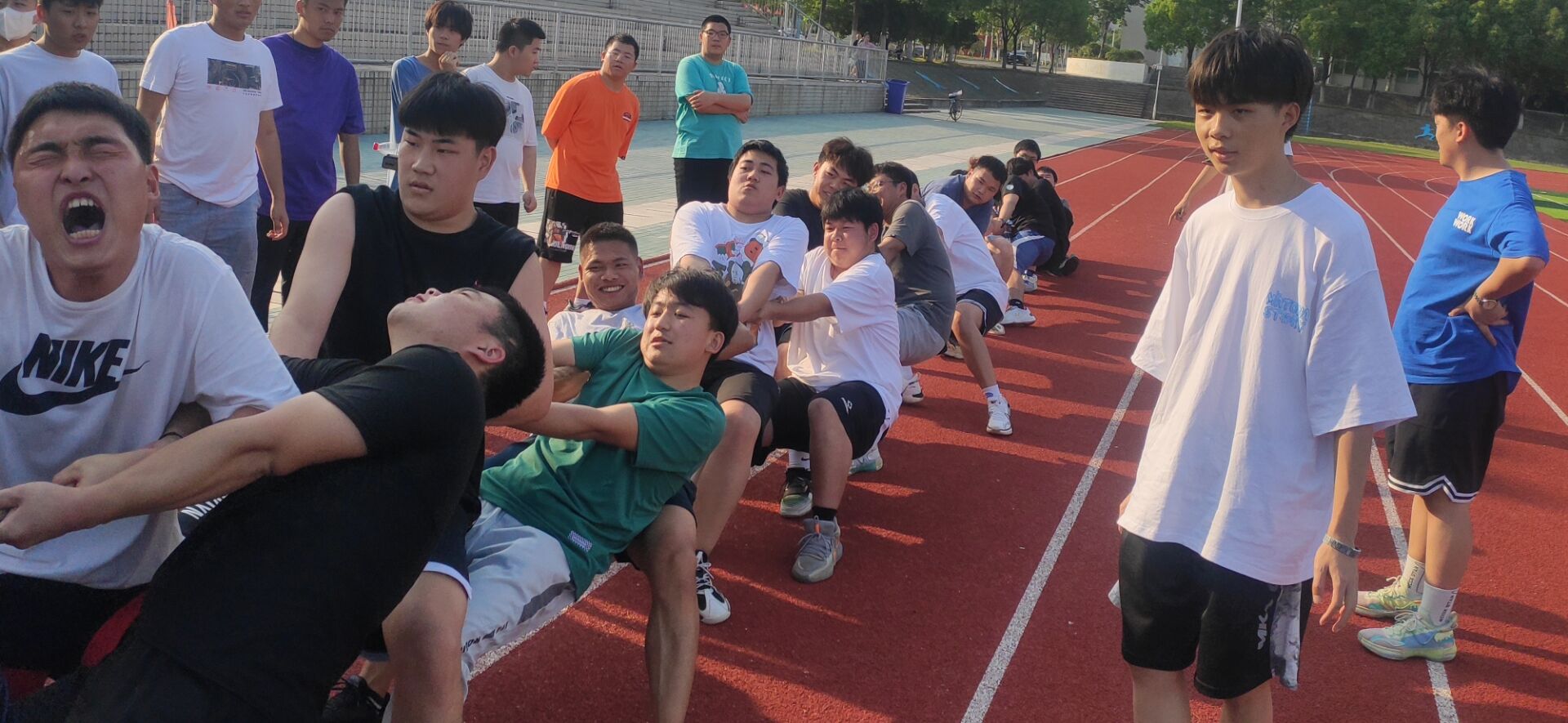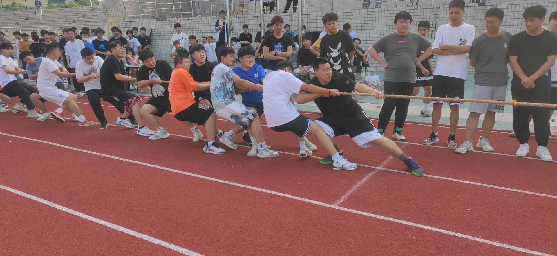 本次拔河比赛参加人数众多,赛前同学们积极踊跃报名,充分展现了同学们热爱体育锻炼的精气神。在比赛过程中,纵使烈日当头,依然没有超越同学们的热情。参赛队员个个斗志昂扬,加油同学个个热情高涨,将比赛气氛一次次推向高潮。