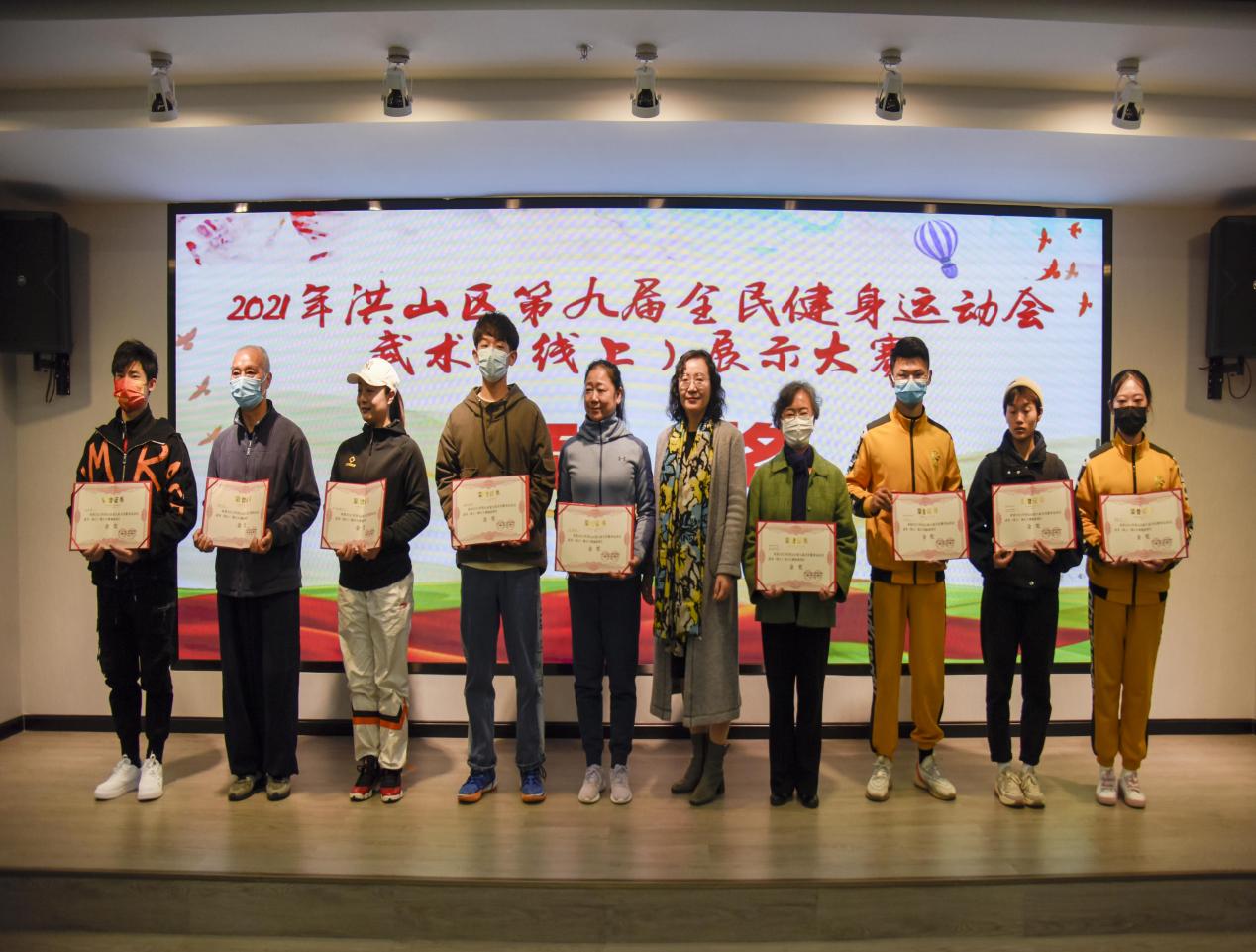 (基础课部)12月4日,洪山区第九届全民健身运动会武术(线上)展示大赛在华润置地公馆养乃世家会议厅举办颁奖仪式,beat365官网选送的“武术操”在此次展示大赛中喜获金奖,并由组委会授予“优秀组织奖”。