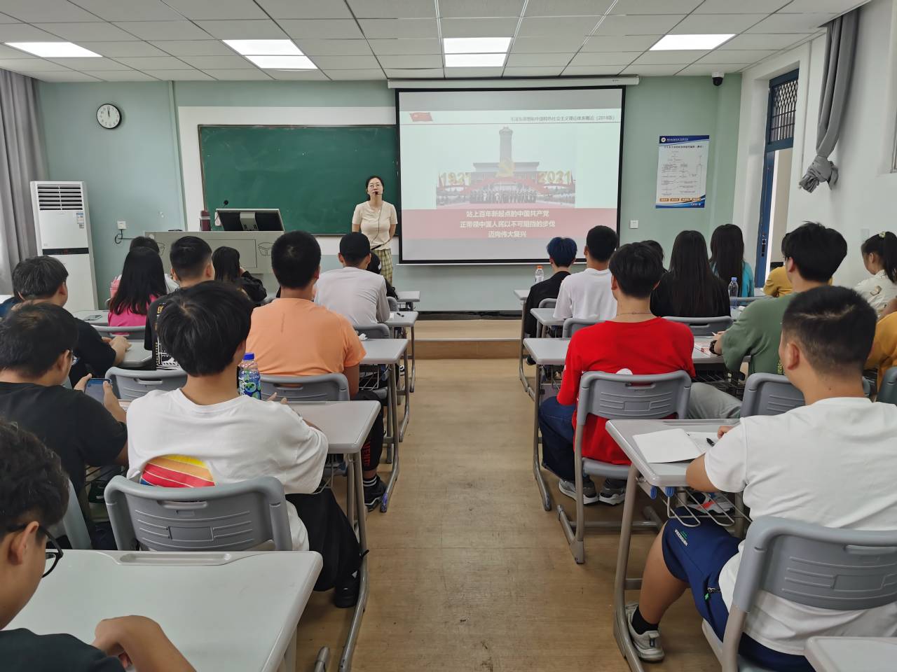 课堂上,龚秀美老师从“开学第一课”入手,围绕全国职业教育大会精神、“职教20条”、如何学好“概论”课三个方面,把“大道理”转化为学生易接受的“小道理”,引导学生培养理论思考的习惯,自觉践行“强国一代”的使命担当,以自己的实际行动为中国特色社会主义事业和中华民族伟大复兴做贡献。兰倩老师从习近平总书记在庆祝中国共产党成立100周年大会上的重要讲话出发,以“中国共产党为什么能?”为导向,通过回顾百年前后的中国共产党如何从一艘载负人民重托的小小红船化身为领航民族复兴大业的巍巍巨轮,引出课程马克思主义中国化这一主线,带领学生梳理了课程完整的体系脉络。