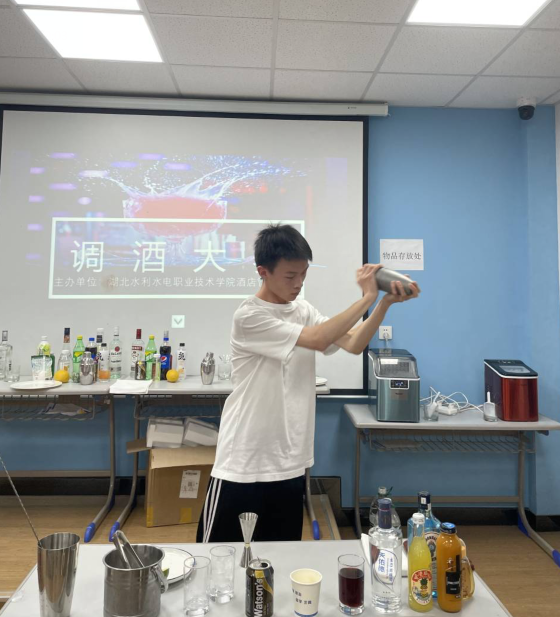 (商贸系)5月27日下午,商贸系酒店管理专业调酒技能大赛在学院南湖校区成功举办,献上了一场美伦美焕的味觉、视觉盛宴。商贸系负责人、教研室老师及19、20级同学参加了本次调酒大赛。