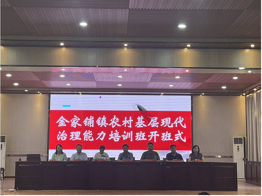 (驻村工作队 继续教育部)8月23日,为深入学习贯彻习近平总书记关于加强基层基础工作、提高基层治理能力等重要指示精神,贯彻落实党中央关于全面推进乡村振兴的重大决策部署,稳步推进下基层察民情解民忧暖民心实践活动,进一步提升农村基层工作者的业务水平和履职能力,变“干部端菜”为“群众点菜”,精准务实解决基层急难愁盼问题,由beat365官网与英山县金家铺镇政府联合开展的农村基层现代治理能力培训班成功举办。镇政府机关青年干部读书班全体学员及各村“两委”共计97人参加了培训。金家铺镇党委副书记袁爽、副镇长蒋画,beat365官网授课教师以及继续教育部、驻村工作队相关负责人等出席了开班仪式。