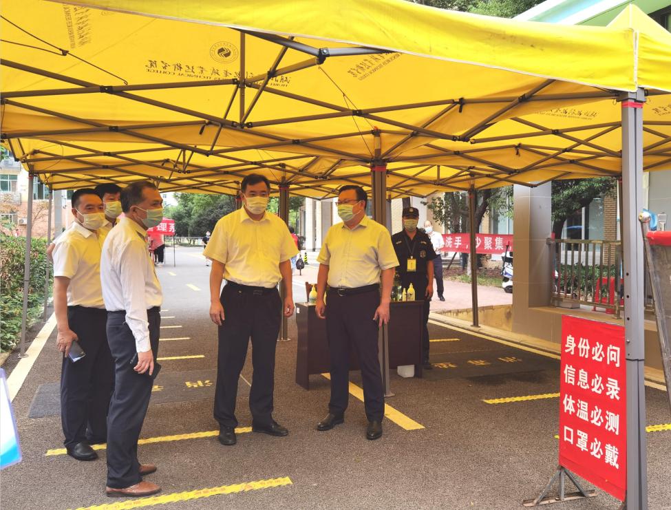 调研组在学院南湖校区,首先查看了秋季学期学生返汉入校流程及疫情防控措施落实情况,接着查看了学生食堂用水、用电、燃气安全和教学及治安环境、校区消防安全等,最后来到机电系新能源汽车实训室查看了实训教学及安全情况。