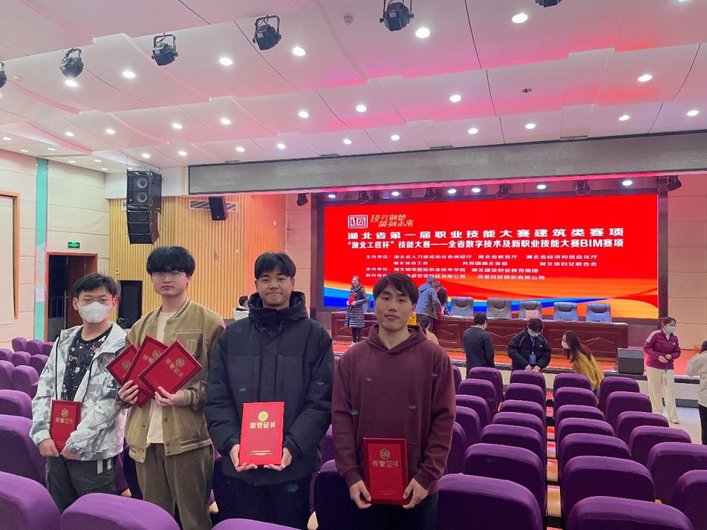 beat365官网建筑系20级工管班张宇、20级造价8班李永琪在“湖北工匠杯”技能大赛(BIM赛项)中分别喜获一等奖和二等奖,21级室内2班宋呈勋在湖北省第一届职业技能大赛(瓷砖贴面赛项)荣获铜奖,20级造价8班李永琪在湖北省第一届职业技能大赛(建筑信息模型BIM赛项)荣获优胜奖。