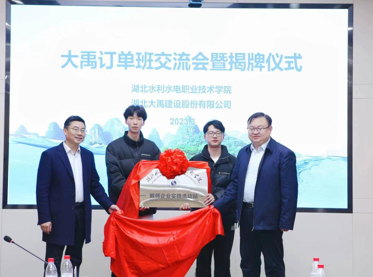 3月3日,院党委书记、院长王玉才,党委委员、副院长黄泽钧、庹祖明,党委委员、教务处处长丁官元,水利工程系负责人及水利工程系23名师生代表在湖北大禹建设股份有限公司举行了实习实训基地揭牌仪式。