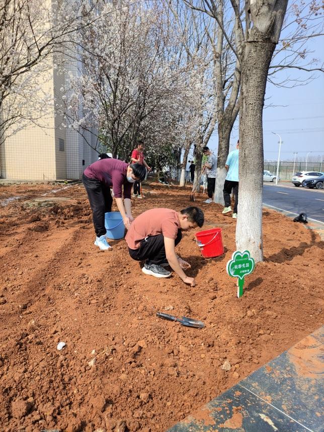 活动伊始,在讲解种植要领后,同学们在系领导和辅导员的带领下拿起铁锹、锄头等工具在各班责任田上忙活开来,整地、施肥、播种、浇水,大家团结协作,抡起锄头就是干,尽管鞋子上沾满了泥土,额头上沁出汗水,但丝毫没有影响大家的劳动热情。活动现场呈现出一片热火朝天的景象。