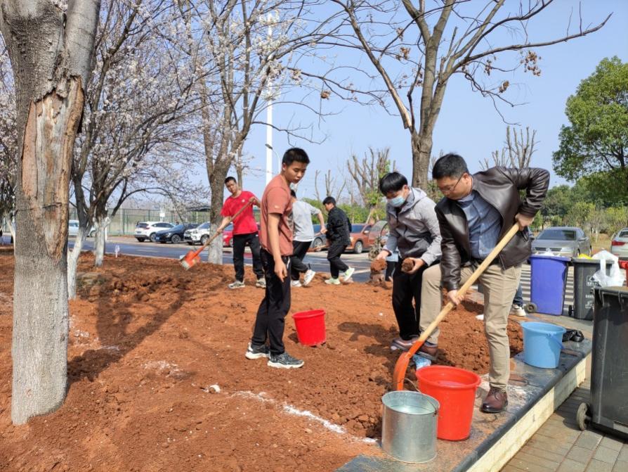 春风吹新绿,植树正当时。3月9日,水利工程系在汤逊湖校区举办了“春风十里,共植有你”植树节暨2023年春季学期劳动教育课启动仪式,系部相关负责人、辅导员及22级学生代表,在水利楼周围以铁锹锄头为“画笔”为美丽水院厚“植”一份绿色希望。