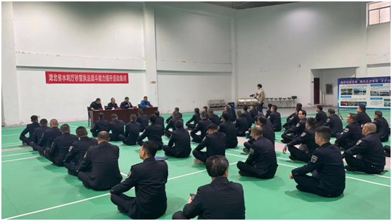 鄢青做动员讲话,他强调集训就是一次补齐短板的宝贵机会,要求参训学员一定要牢记使命、端正态度、练就一身硬本领。他希望参训学员通过队列体能训练、经验互动交流、法规学习考试等形式多样的集训内容,坚定守纪意识、丰富法律知识、提升协调能力、强健身体素质,提升治沙管理水平和能力,将砂管人敢为人先、冲锋陷阵的精神发挥到工作中来,成为一名合格的管理者、执法者,促进水行政执法工作迈进一个新台阶。