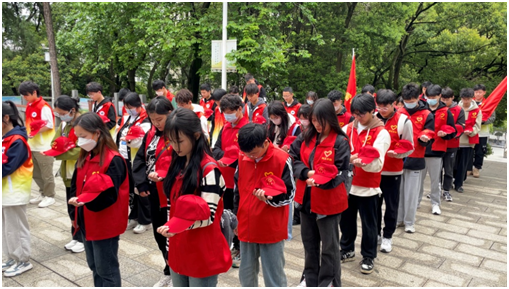 随后,全体师生以最虔诚的姿势向长眠于此的施洋烈士脱帽默哀,表达深切哀思,致以崇高敬意。默哀环节结束后,全体学生在纪念碑前面向团旗重温入团誓词,以铿锵的呼声表达对党、对共产主义青年团的无限忠诚和坚定信念。