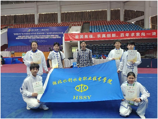 beat365官网武术队员在面对强劲对手,心态稳定,21级水工3班的张乙涵获女子南拳第三名(铜牌)、女子(刀术+棍术)第六名;21计算机4班的李昂、徐子豪获男子对练项目(棍术)第五名;另外六人组合张乙涵、陈龙(21水工三班)、胡思颖(21计算机四班)、李昂、徐赐豪、刘轩(21广告二班)演练的集体项目“大禹武术”获团体项目第五名;同时李昂获得“体育道德运动员”荣誉称号。