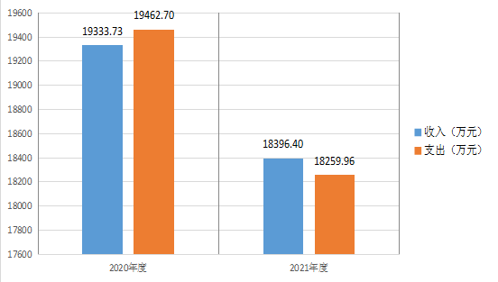 2021年度收入合计18396.4万元,与2020年度相比,收入合计减少937.33万元,下降4.8%,主要原因是人员工资中2项奖励暂停发放减少支出,一般性公用支出压减,项目经费相比上年度有所减少。
