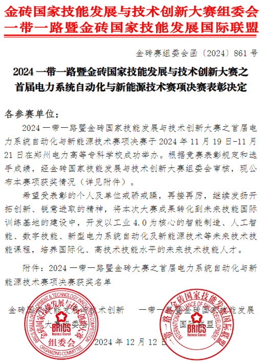 6.2024一带一路暨金砖国家技能发展与技术创新大赛之首届电力系统自动化与新能源技术赛项