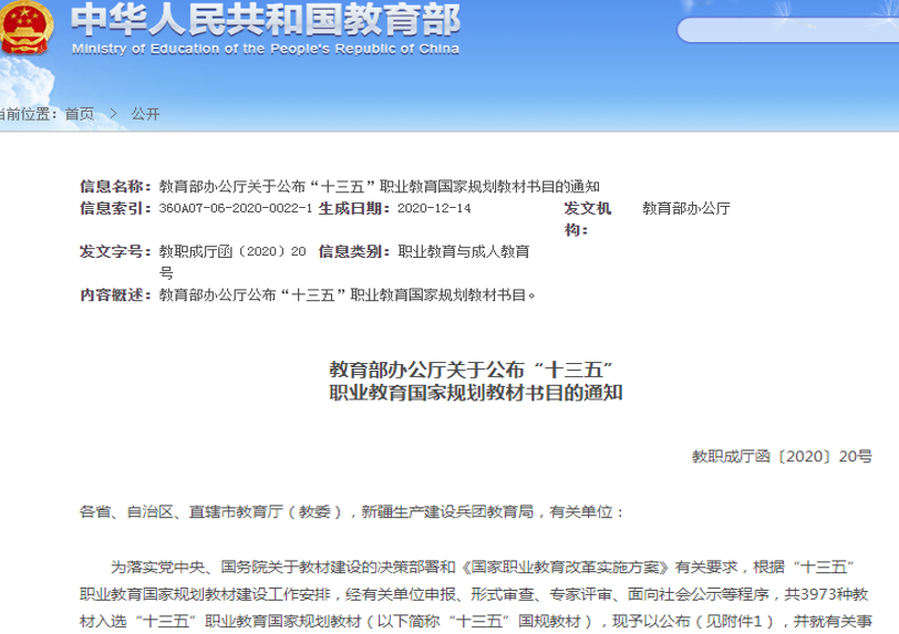 (二)教材被认定为“十三五”职业教育国家规划教材