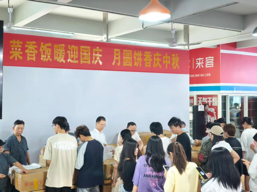 9月29日,学院后勤服务中心组织两校区食堂开展“中秋送月饼送温暖”活动。活动当天,校园内节日氛围浓厚。中午,后勤服务中心联合两校区食堂向前往食堂就餐的师生免费赠送月饼,累计发放达11200份。