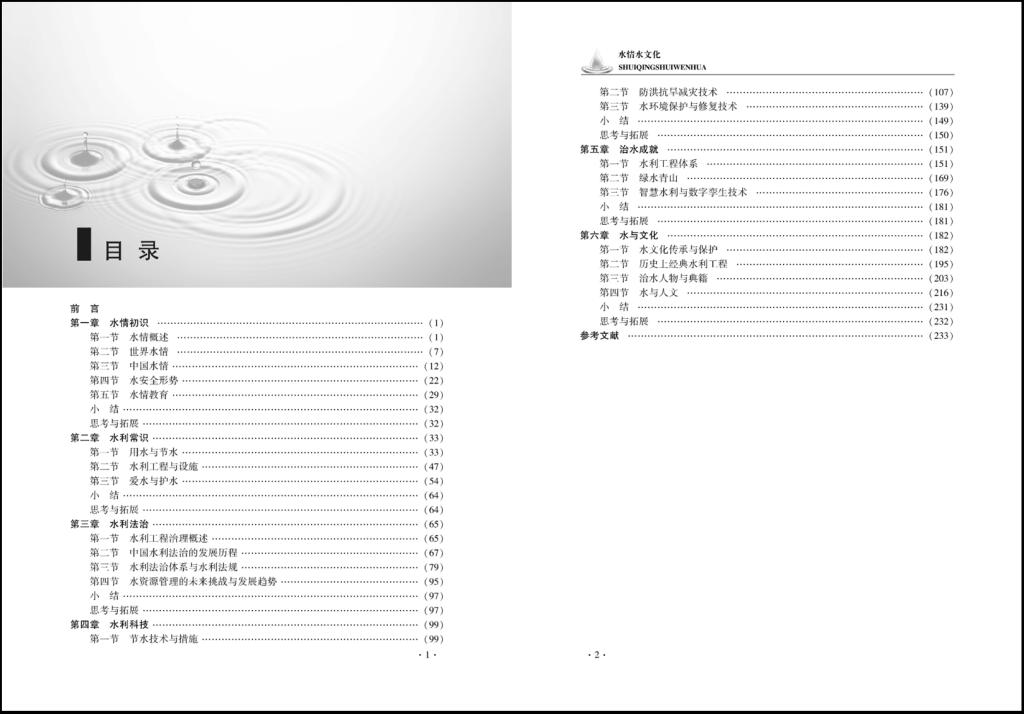 《水情水文化》于2024年1月出版发行,为高职高专通识教育特色教材,是“互联网+”新形态教材。教材全面落实《“十四五”全国水情教育规划》指导思想,旨在增进全社会对基本水情和新老水问题的认知,增强全社会水安全、水忧患意识,提高社会公众对水资源节约、水生态保护、水污染防治的认识和应对水旱灾害的能力,促进形成人水和谐的社会秩序。全书共6章,主要内容为水情初识、水利常识、水利法治、水利科技、治水成就、水与文化,辅以二维码知识链接与知识拓展,图文并茂。