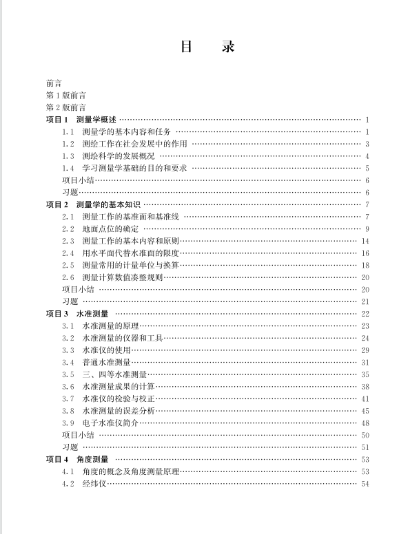 《测量学基础》教材第三版以项目驱动、任务导向体例形式编写,全书分为12个项目,细化为59个工作任务。在第二版的基础上重点进行了以下修改: