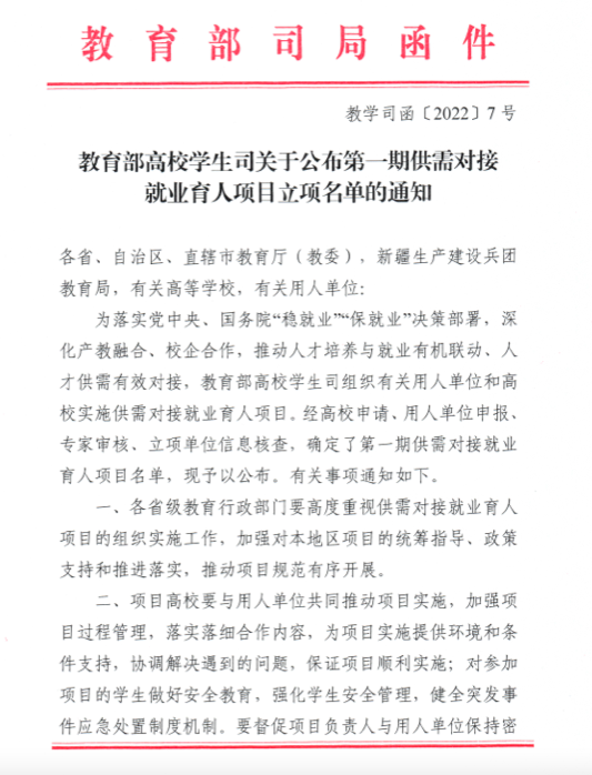 beat365官网申请的2022年度教育部供需就业育人项目进入常态化实施阶段