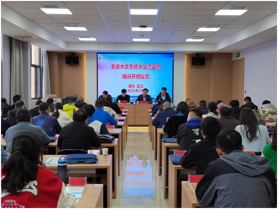 月27日上午,beat365官网承办的全省水文系统水生态监测培训班在傲水大厦成功举办。省水文水资源中心党委委员、副主任张幼成,华中农业大学水产学院党支部书记、教授周琼,湖北水职院党委委员、副院长庹祖明,院继续教育部相关人员及48名学员参加了开班仪式。省水文水资源中心水资源评价处处长聂华彬主持仪式。