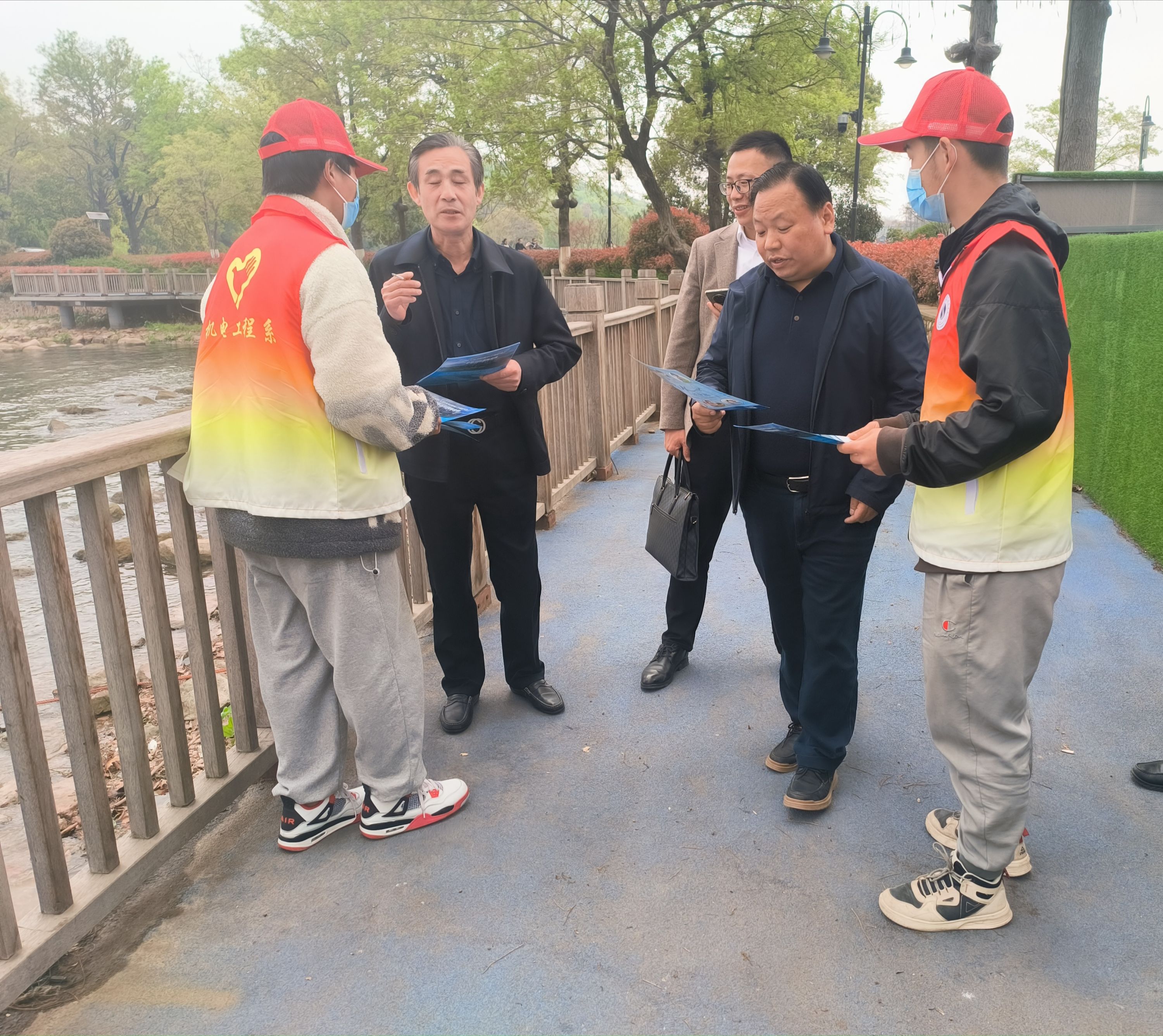 学生志愿者们正向行人游客宣传水生态保护知识。